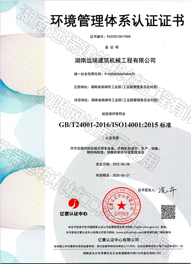 环境管理体系认证证书